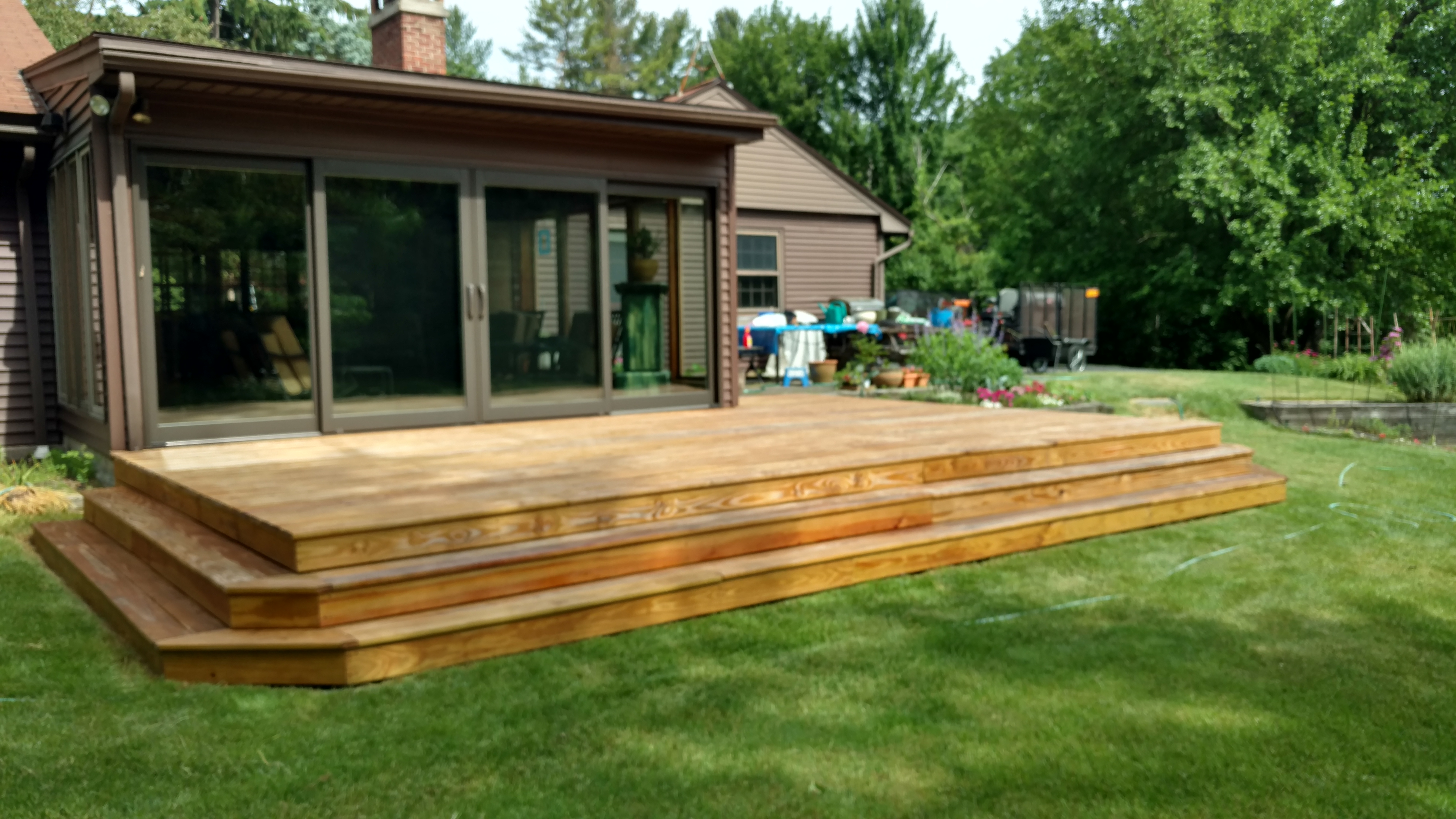 Finished project showing our clients new deck that we built and stained.