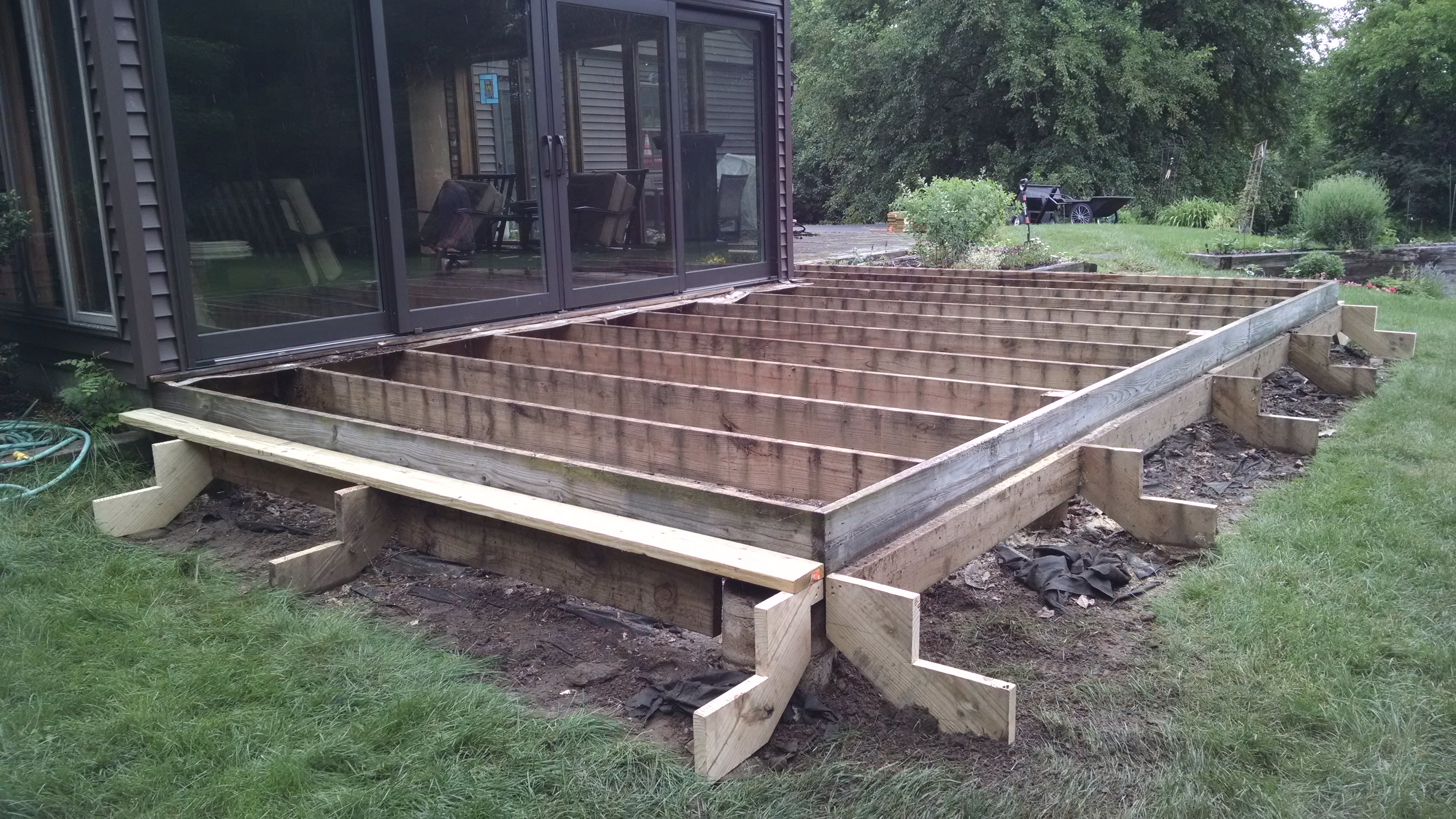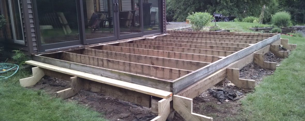 Clients old deck. In the process of removing old wood so we can refinish and restore to make it look brand new!